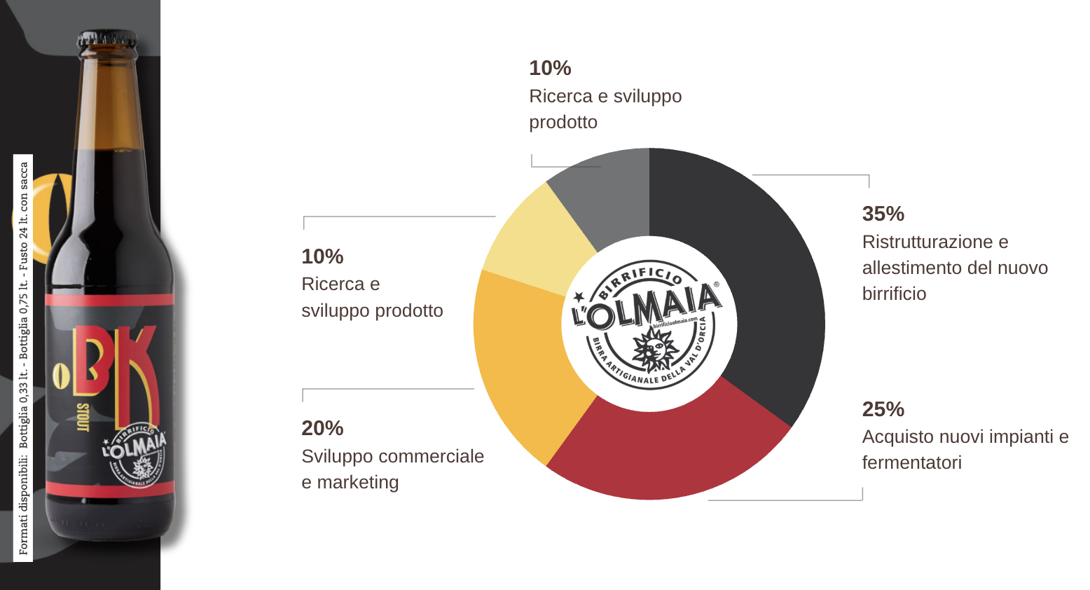 I capitali raccolti tramite la campagna di equity crowdfunding saranno utilizzati per sostenere la crescita e il consolidamento del Birrificio L’Olmaia, accelerando il piano di sviluppo industriale, commerciale e turistico.