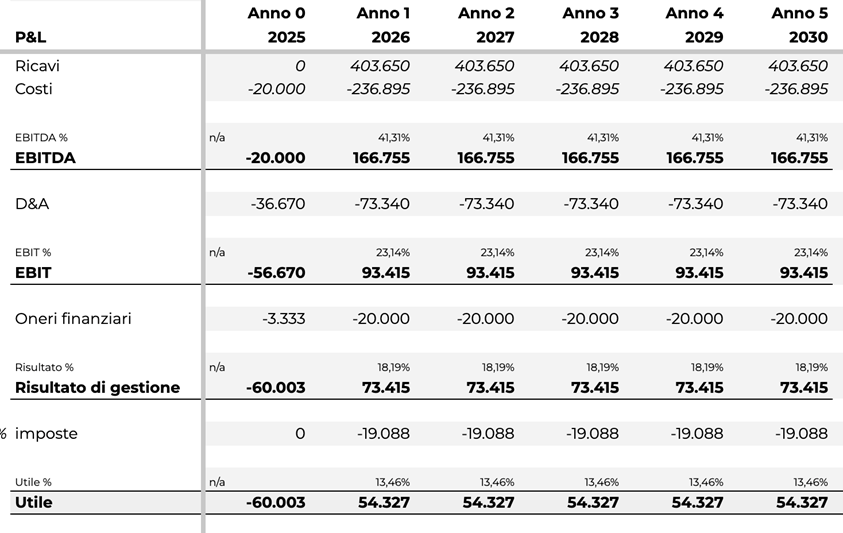 La società prevede un rendimento netto del 9% annuo. Alla scadenza dei 5 anni, è prevista la vendita della proprietà, supportata da uno storico consolidato di fatturato ed EBITDA.
