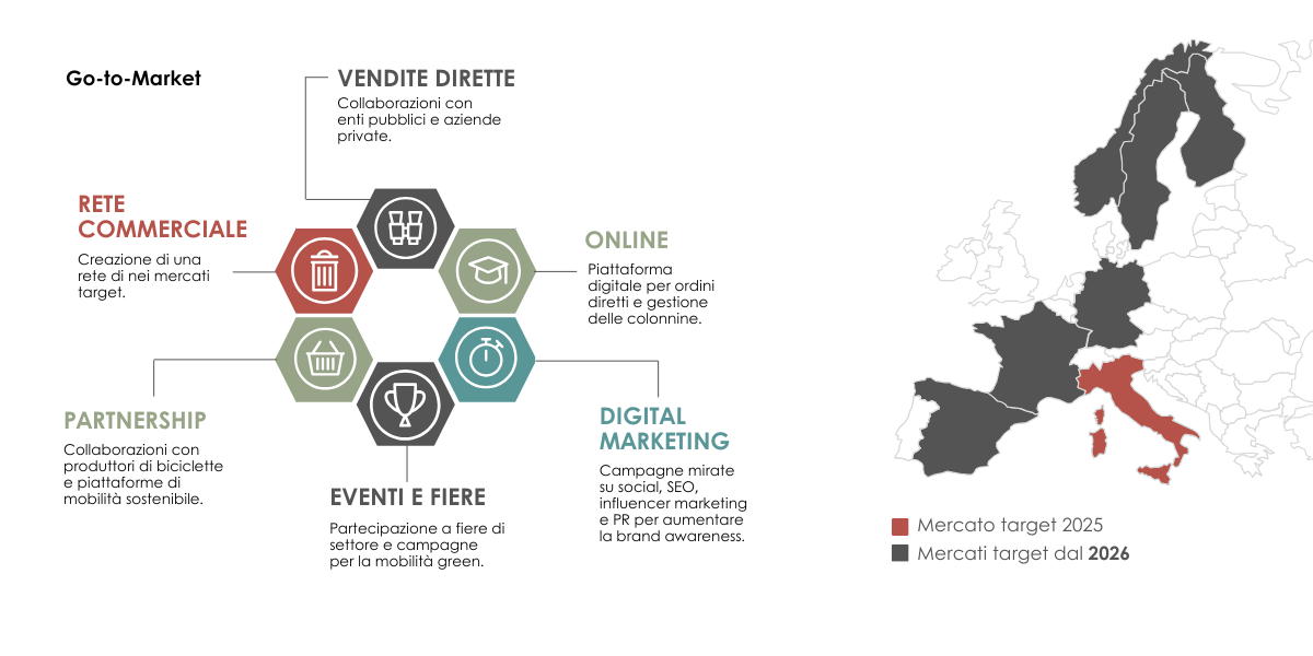 Nel 2028 l’azienda prevede di superare 1 milione di euro di ricavi. Il piano di crescita prevede l’espansione nel mercato italiano e in quelli europei, supportato da una rete commerciale e da partnership strategiche con enti pubblici e operatori di mobilità.