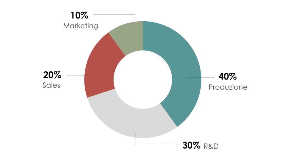 • 30% R&D: Potenziamento funzionalità smart e sviluppo versione con pannelli solari.