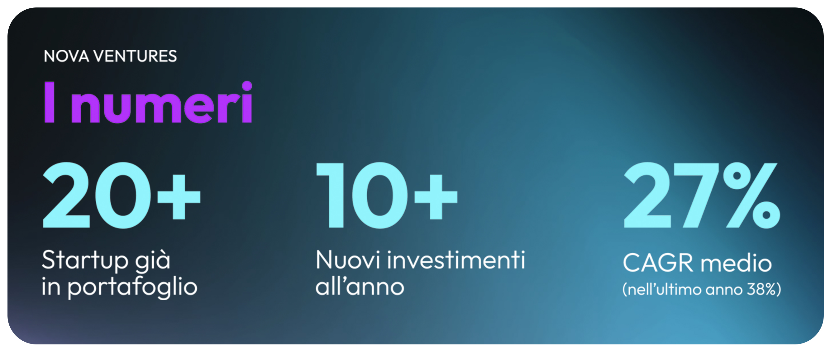 Nova Ventures nasce nel 2025 con un portafoglio attivo di oltre 20 startup e l’obiettivo di realizzare 16–20 nuovi investimenti ogni anno. L’attività è focalizzata su quattro verticali ad alto tasso di crescita: PropTech, LifeTech, CreativeAI e Impact Investing. Il modello operativo ibrido combina entrate ricorrenti (derivanti da servizi e programmi di accelerazione) con il potenziale upside da exit e rivalutazione delle partecipazioni, garantendo una doppia leva di crescita.